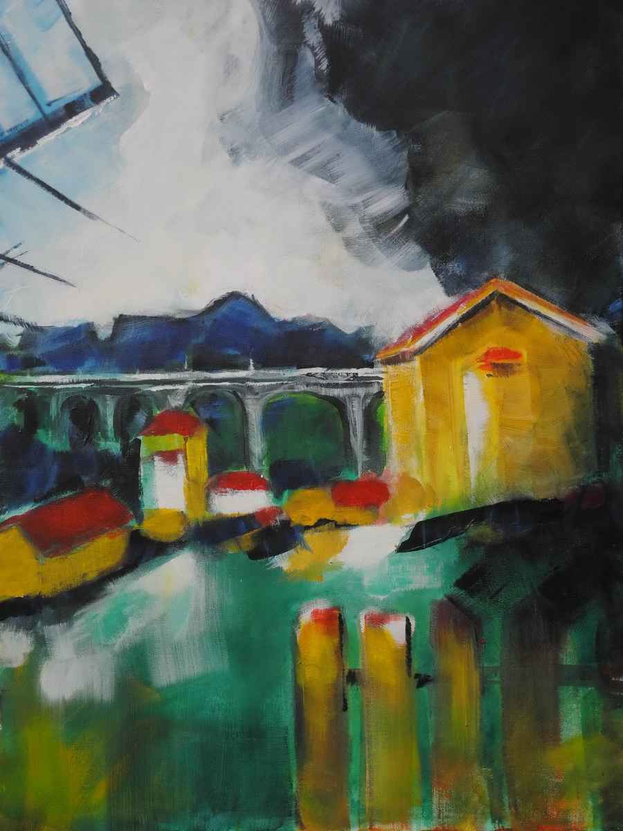 Ich kann Bilder in meinem Gedächtnis speichern und wieder hervorrufen. Alle diese Bilder – die Landschaft bei der Kolumbanshöhle, die Maschinenfabrik und das «Gelbe Haus» mit dem Viadukt – habe ich in einem Triptychon festgehalten.